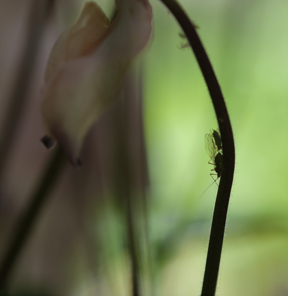 At first I enjoyed just photographing plants – leaves, buds, flowers. But then I noticed how many creatures share these plants and live in or on or with them. So now a plant without a pollinator or a predator just looks lonely.