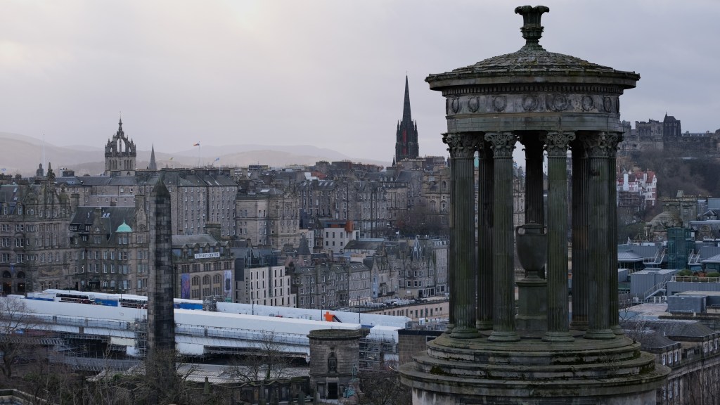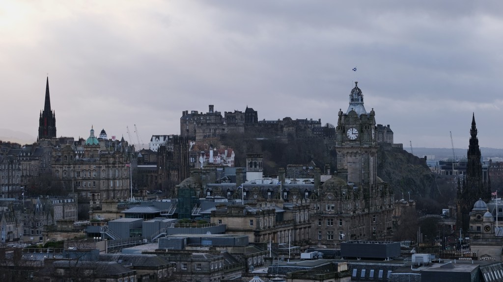“This profusion of eccentricities, this dream in masonry and living rock, is not a drop-scene in a theatre, but a city in the world of every-day reality.” “And then, upon all sides, what a clashing of architecture! In this one valley, where the life of the town goes most busily forward, there may be seen, shown one above and behind another by the accidents of the ground, buildings in almost every style upon the globe. Egyptian and Greek temples, Venetian palaces and Gothic spires, are huddled one over another in a most admired disorder; while, above all, the brute mass of the Castle and the summit of Arthur’s Seat look down upon these imitations with a becoming dignity, as the works of Nature may look down the monuments of Art.” Robert Louis Stevenson
